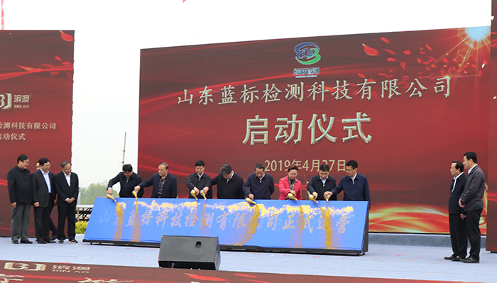 各位領(lǐng)導(dǎo)同志為山東藍標檢測科技有限公司鎏金臺揭幕