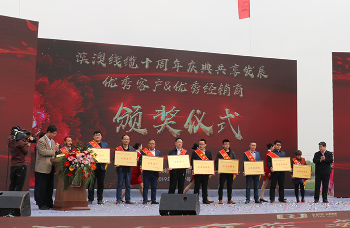隨后在各位領(lǐng)導(dǎo)同志的共同見證下,山東濱澳電線電纜有限公司分別與濱州學(xué)院簽訂了成立航空線纜研發(fā)中心的協(xié)議,與濱城區(qū)財金集團和外商利奧·羅德先生簽訂戰(zhàn)略合作協(xié)議。簽約儀式完畢之后,各位領(lǐng)導(dǎo)同志共同為山東藍標檢測科技有限公司正式運營的鎏金臺揭幕。最后濱州市委常委、統(tǒng)戰(zhàn)部部長李家良同志為濱澳線纜的優(yōu)秀客戶和優(yōu)秀經(jīng)銷商頒獎。