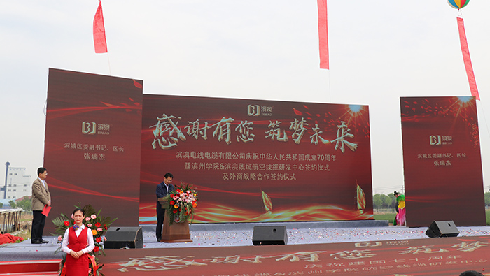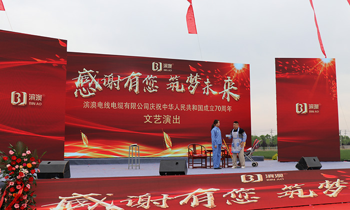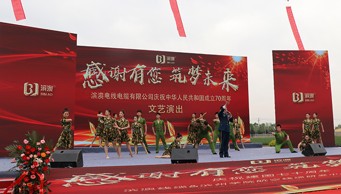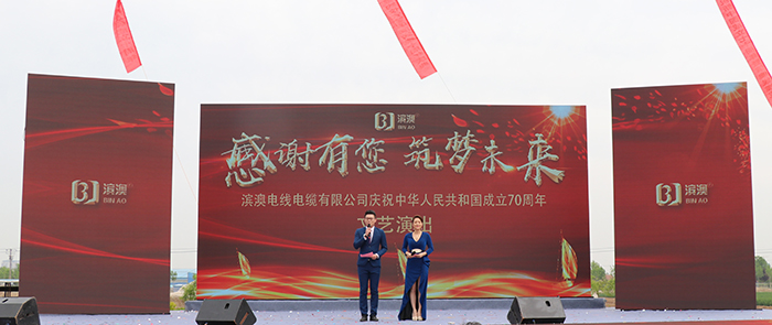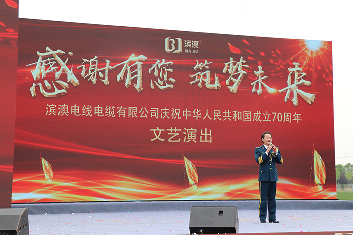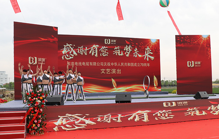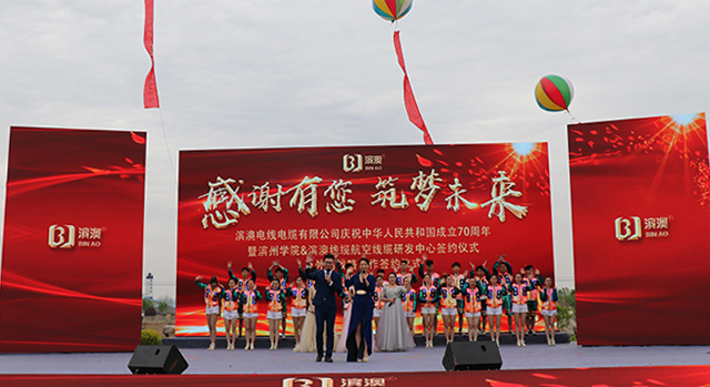 2019年4月27日上午,濱澳線纜濱州學(xué)院航空線纜研發(fā)中心成立儀式暨濱澳線纜成立十周年慶典勝利召開,儀式結(jié)束后山東濱澳電線電纜有限公司舉行了主題為“感謝有您,筑夢未來”慶祝中華人民共和國成立70周年文藝演出。這次文藝演出是由山東濱澳電線電纜有限公司主辦,濱州電視臺承辦?;顒硬⒌玫搅藶I州市、濱城區(qū)、濱州工業(yè)園區(qū)和濱北街道辦事處等各機關(guān)單位、企業(yè)和社會各界的大力支持。